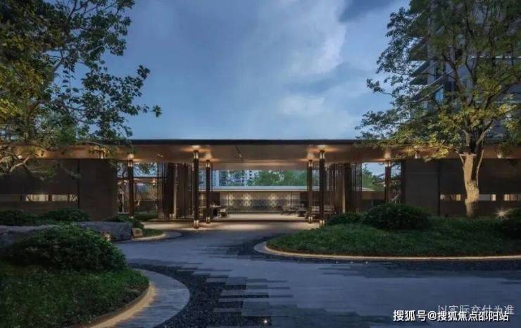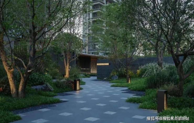 铺装上独具特色的拼接方式更是入户精致感的体现。道路两侧射灯兼顾照明引导功能的同时,烘托温暖宁静的归家仪式感,带来更具品质且自然的隐奢生活。