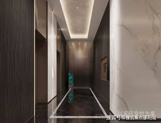 在电梯厅的设计中,为营造专属领地的私密感,设计采用了弧形倒角,呼应迎宾造型。地面融入天珺系专属纹样,打造出艺术归家场景。