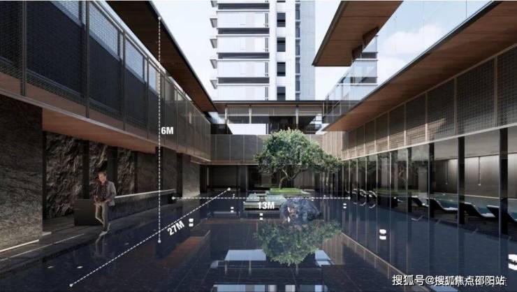 穿过门庭和连廊后豁然开朗的水院是未来生活的社区运营空间。