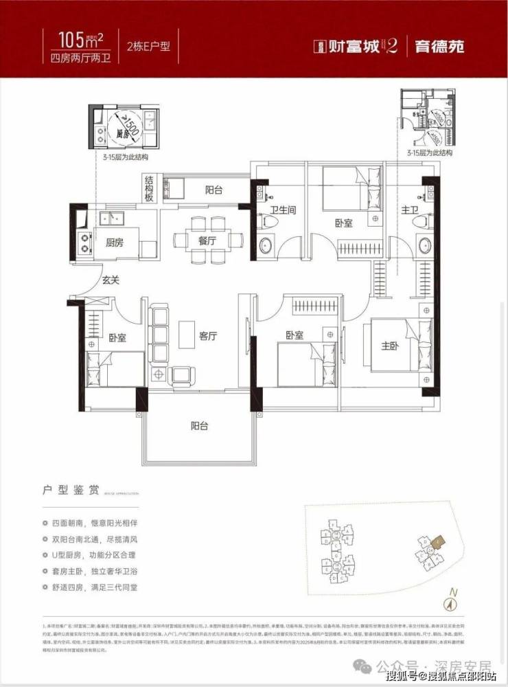 本次推售的财富城育德苑,总占地面积约1.2万㎡,总建筑面积约7.8万㎡,计容建筑面积约5.48万㎡,容积率4.72,绿化率35%,共规划2栋3座26-48层高的住宅,其中1栋A座住宅48F,1栋B座住宅42F,2栋住宅26F,规划有3000㎡商业。