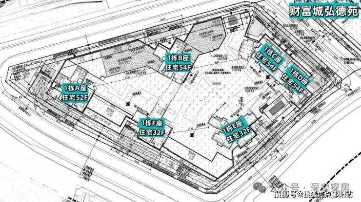 财富城弘德苑,总占地面积约2.16万㎡,总建筑面积约18.1万㎡,计容建筑面积约14.2万㎡,容积率6.58,绿化率35%,共规划5栋6座32-54层高的住宅,其中1栋A座住宅52F,1栋B/C/D座住宅54F,1栋E/F座住宅32F,规划有7050㎡商业。