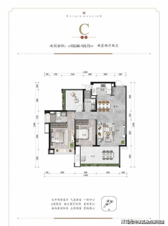 C户型: 建筑面积103平米