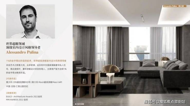 来自艺术之都意大利的超艇设计领导者Alessandro Pulina,众多欧洲、远东和中东国家高端奢华私人住宅、酒店度假村、豪华游艇设计项目执笔人,主要客户皆为全球1%的金字塔尖精英阶层,从中东皇室成员、欧洲贵族,到意大利奢侈品服装品牌创始人。