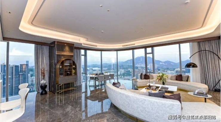 6、源系TOP级作品: 云端地标 环幕视野0约208米云端地标,270°环幕视野,坐拥地标级城市景观与稀缺山水资源:2定制超白三层中空LOW-E曲面玻璃搭配横向铝板线条,标识性的超流线立面建筑