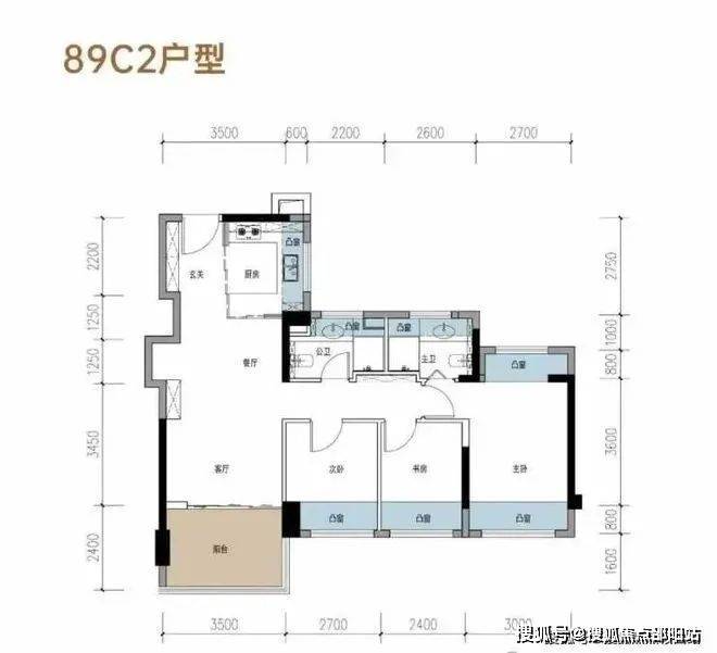 【C户型 约89㎡3房2卫】