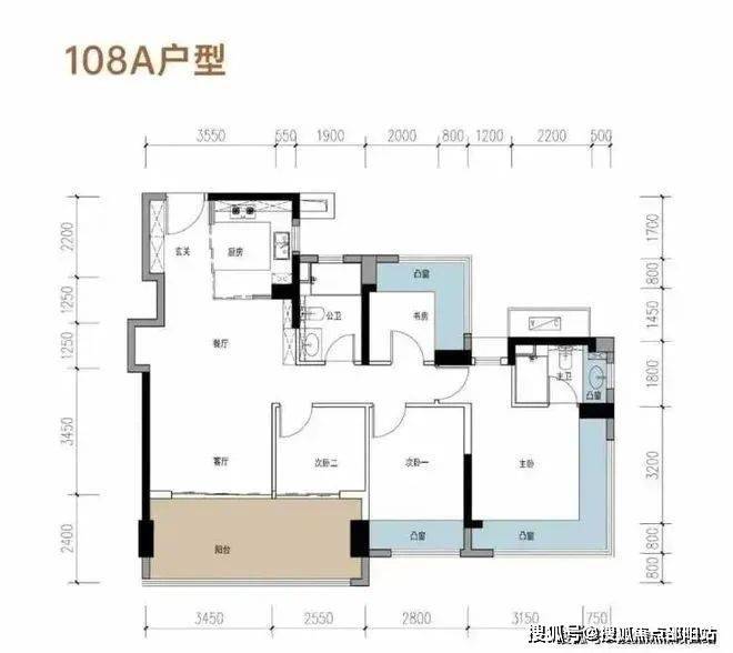 【A户型 约108㎡4房2卫】