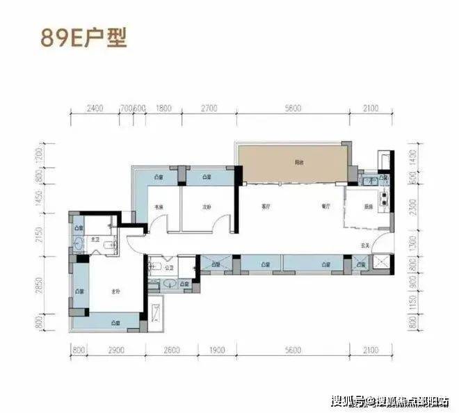 此次首推的1栋约89-108㎡3-4房,产品十足,不同户型的实际使用率加赠送面积有约95-105%,在光明确实少见,其中89E户型表现最突出