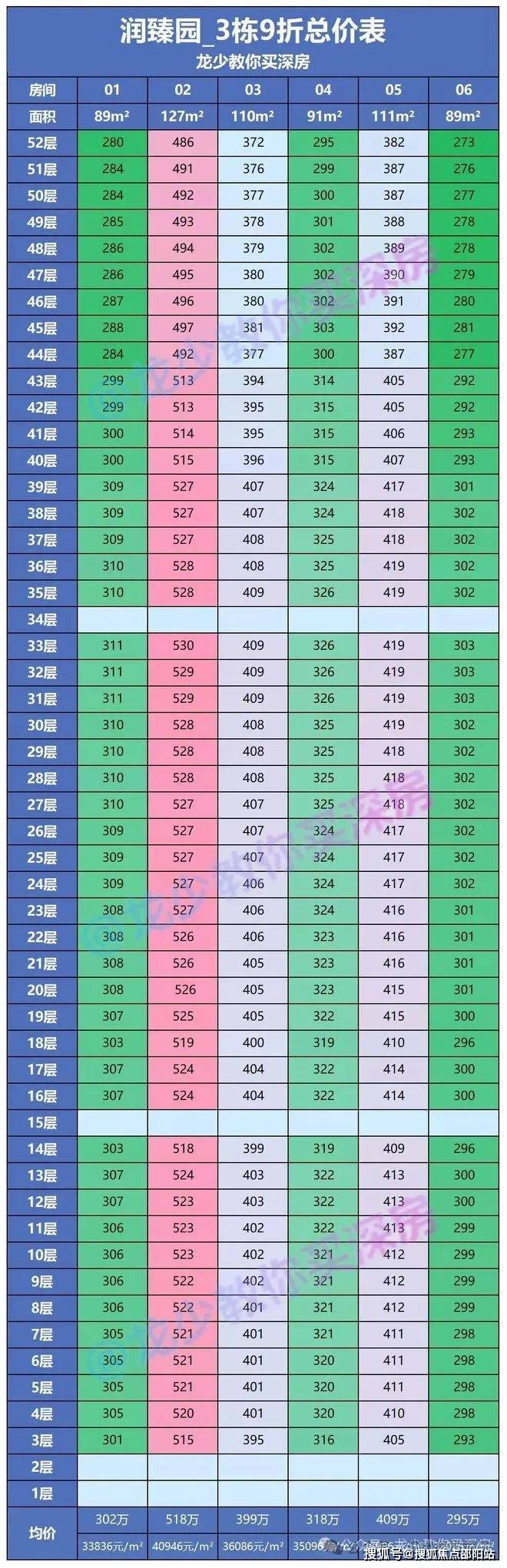 89平3房竖厅:折后总价296-327万,折后单价3.27-3.61万/㎡,东南向直望公园,景观无敌,稀缺性拉满!