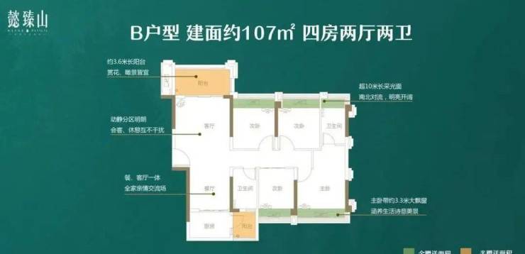 ✔ 107㎡ 南北对流,四房两厅两卫