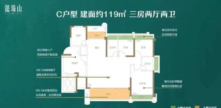 ✔ 119㎡ 南北对流,三房两厅两卫