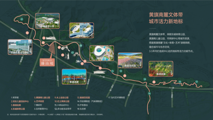瑧山境为黄旗南麓文体带唯一住宅项目,通过廊桥实现与黄旗南文体带的无缝链接。