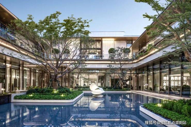 240m 长的归家连廊延伸至楼栋,地上地下双归家动线体系,与不同庭院形成立体花园空间。景观设计更是一绝,森野秘境、琉光水院、闲林逸境等多重景观,通过 “水” 元素串联,让业主归家即度假。