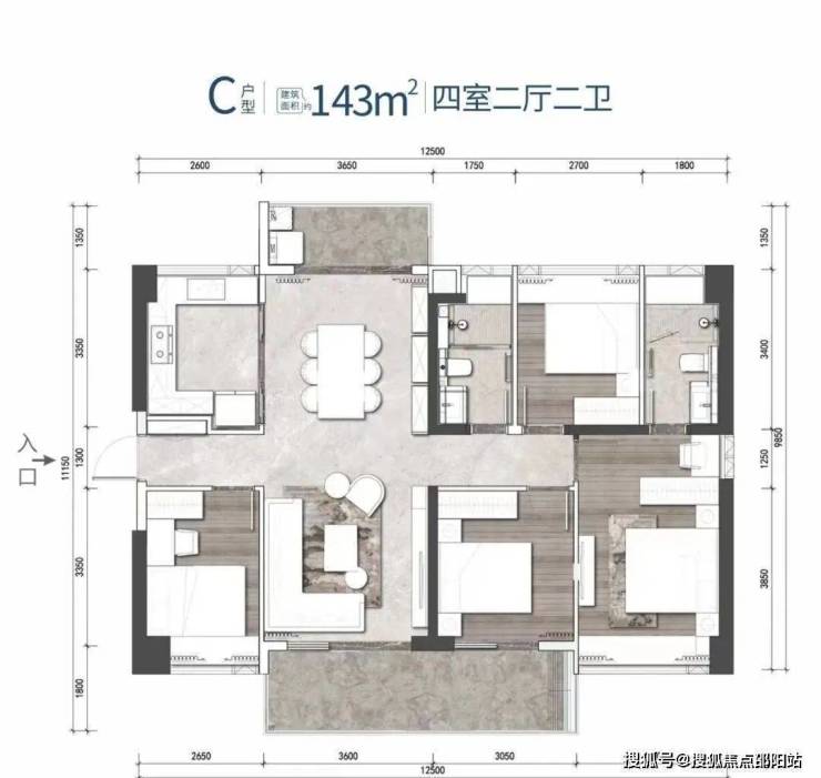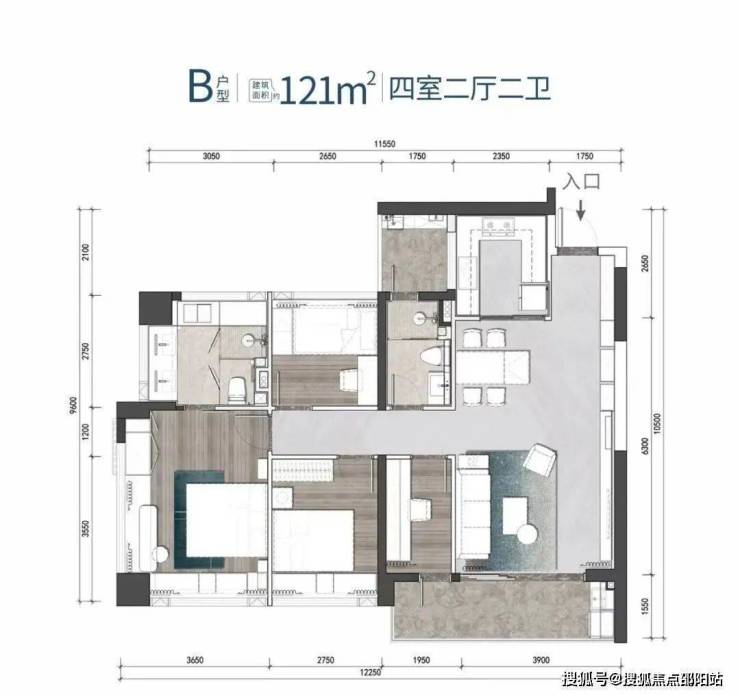 户型:109-111㎡3房,121-143㎡4房