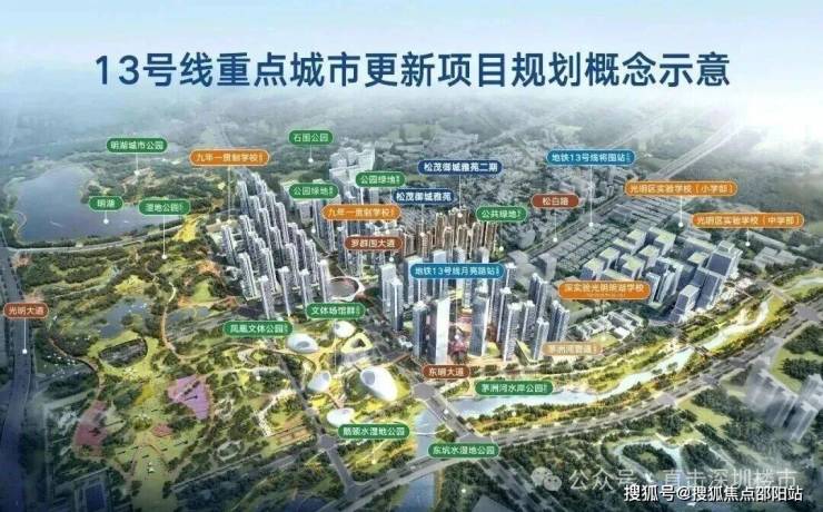 周边配套:项目配套能级为光明科学城核心区顶配,交通上无缝接驳地铁6号线凤凰城站,未来可通过地铁13号线、深莞增城际便捷通达;教育上近邻深圳理工大学、中山大学(深圳校区)、深圳职业技术学院,中小学学区属华南师范大学附属光明学校、深圳实验光明学校(具体以当年教育局划分为准);产业上坐享光明科学城(合成生物、脑科学、新材料等大科学装置集群)的科创产业与人才红利;生态上近邻光明小镇、虹桥公园、茅洲河,景观资源丰富。