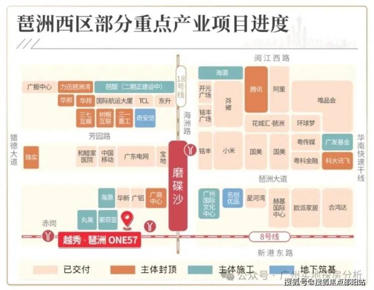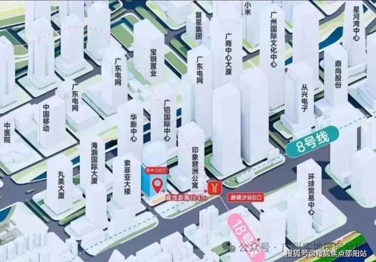 交通:位于琶洲西区核心,紧邻地铁8号线和18号线磨碟沙站,步行约124米可达,一站直达珠江新城冼村,半小时内覆盖广州主要商圈。
