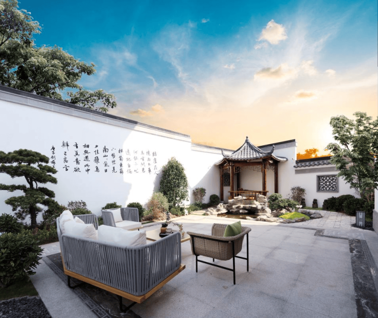 后庭院则是家人舒展身心的场所,一头连接的是内心的自然,另一头是温暖的家生活。可以是文化与自然的空间,亭台楼阁,花花草草,读书喝茶,吟诗作画,抚琴对弈;也可以是活力与社交的展示,泳池畅泳,派对烧烤,欢呼举杯。即使工作再忙碌,回到家中感受温暖的生活,明白什么是生活的真正意义。