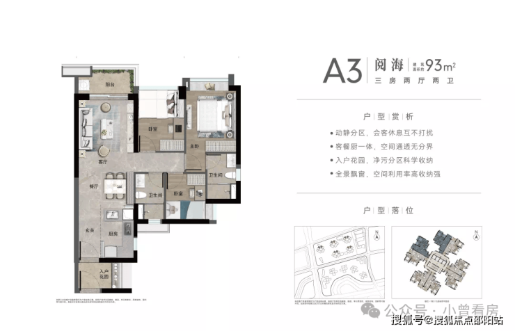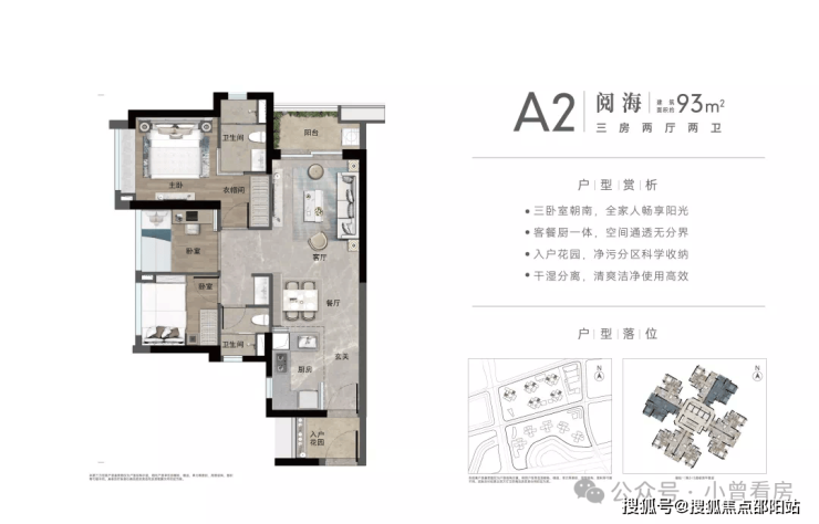 约93㎡南向3房,约93㎡北向3房。