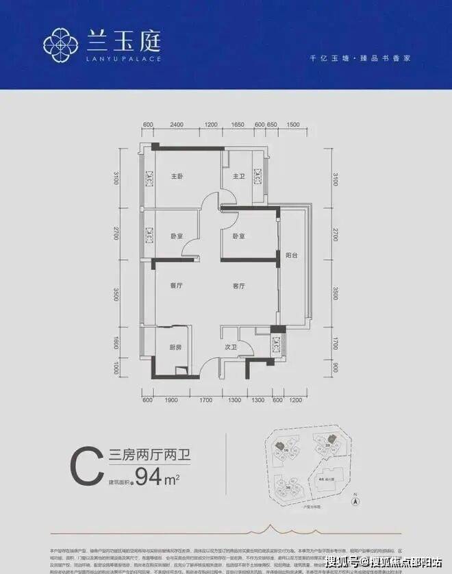 94㎡三房两厅两卫:南北通透格局,客厅开间3.5米,四空间南向,客厅联通卧室大约有6.2米超大阳台,主卧套房私密性好,主次卧面宽分别为3.1/2.7/2.7,得房率在93%左右(含赠送)。