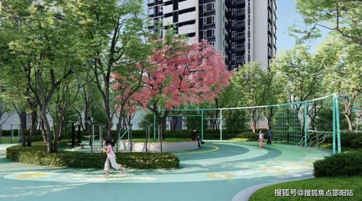 【综合性休闲空间】占地约500㎡,设置青年健身区与老人健身区,家人共享娱乐休闲时光