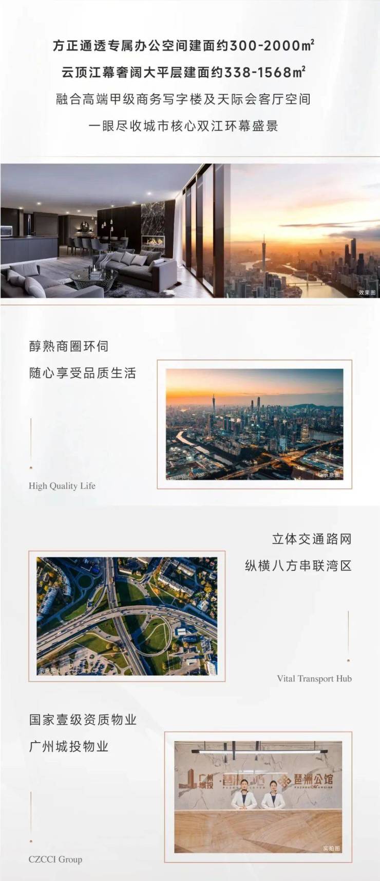 广州城投集团深耕城市建设运营20载,将沉淀多年的开发经验、品质经验倾注于此,以时代之远见和国际化高标准理念,筑造全新顶豪封面;琶洲中心·琶洲公馆领衔一座城市的骄傲,不仅镌刻城市地标荣耀,更是难得一遇的精品著作。