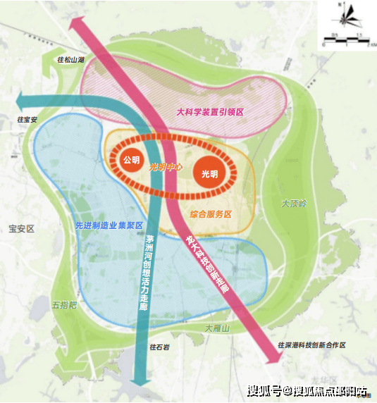 其中,公明片区在"一心两区,一环双廊"空间发展格局中,被赋予发展大科学装置集群的重任。大科学装置集群核心区将重点建设瞄准国际科技前沿、引领科技发展方向的世界级稀缺性大科学装置。
