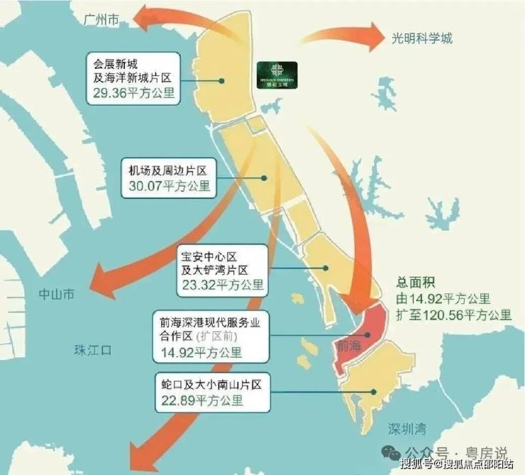 🌁前海展翼:宝安作为湾区发展的桥头堡和主力军,深挖城市发展潜力,明确三城发展目标在前海“扩区”重磅落地之后,宝安1/5的范围加入前海,前海2/3的范围落在宝安,宝安一跃成为国家战略主战场。