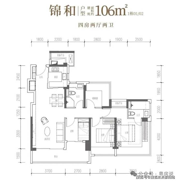 建面约106㎡宽幕人生,以IMAX光幕揽景,以LDKB方厅聚情,更以转角视野与匠心细节,奢享从容生活。• 锦瑟·建面约107㎡4房2厅2卫:双龙抱珠,一线园景,奢阔雅居
