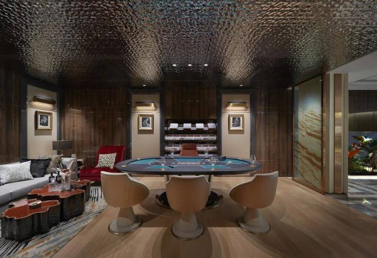 三层整体为生活功能区,室外打造了健身区、空中泳池和休闲大露台,室内设有起居厅、茶室并配备了两个套房。四、五层打造成儿童房、老人房,及国内罕见的全层奢华主人套房,光主套面积就高达495㎡。在赋予其高利用率的同时,恰如其分地运用“空间留白”的手笔,营造“和而不同”的居住体验。各个空间功能分区明显,却并不封闭,通过错层设计等巧思保持各自空间的独立性。