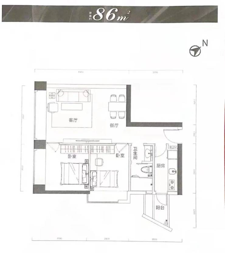 85-86平两房,剩余46楼以上,总价630万起;