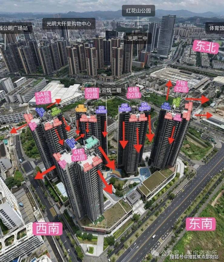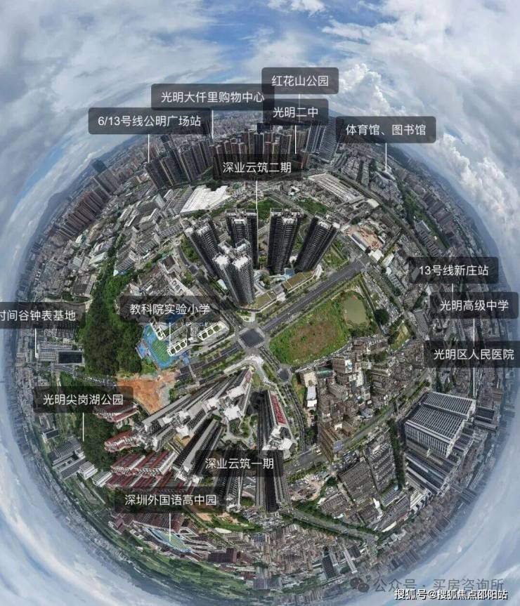 .深业云筑,位于光明的公明板块,这里既是光明生活氛围比较成熟的片区,这里拥有大仟里商业综合体,光明高中园,周边还分布有光明区文化馆、红花山体育中心,地铁13号线新庄站约700米,这是深业进入光明的首个云系产品,也是公明片区继2019年宏发天汇城后,又一个建面超30万㎡的大盘。