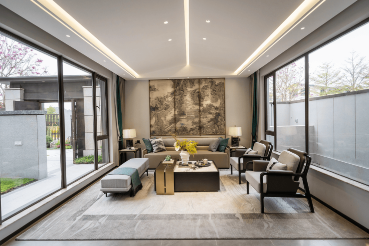 ➝二期园林:以“与山絮语,入林归居”为设计核心理念,结合传统东方院落的中式园林风格,采用台地方式设置奢阔景观面。