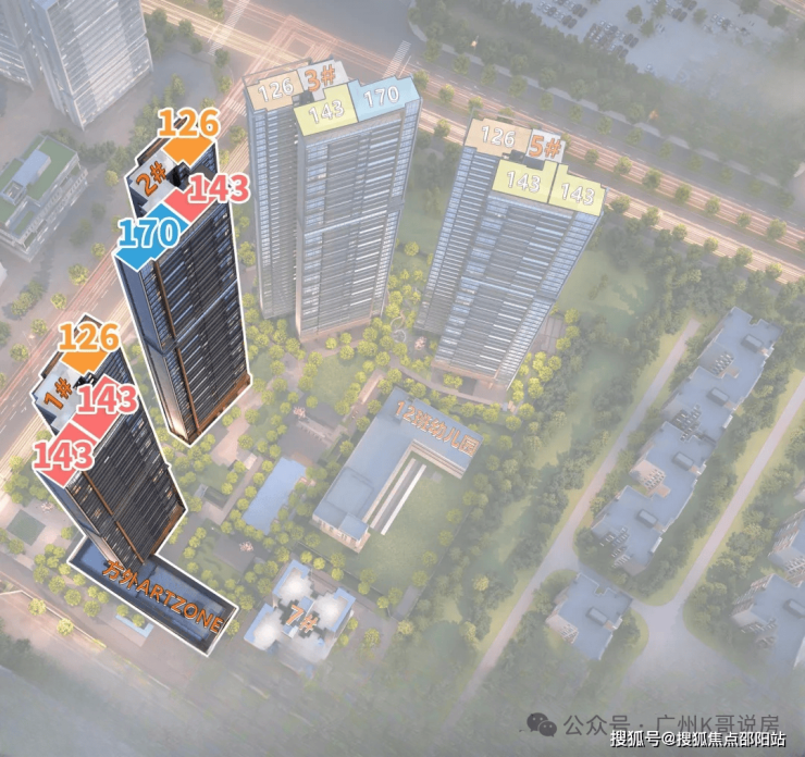 中海麓府体量不大,仅4栋住宅,40多层高的住宅(1#高40层,2-3#高44层,5#高41层),两梯三户,底下规划有1所12班幼儿园+1栋自持物业,货量在500套上下,它的面积段有三种,分别是建面约126㎡三房、143㎡和170㎡的四房。