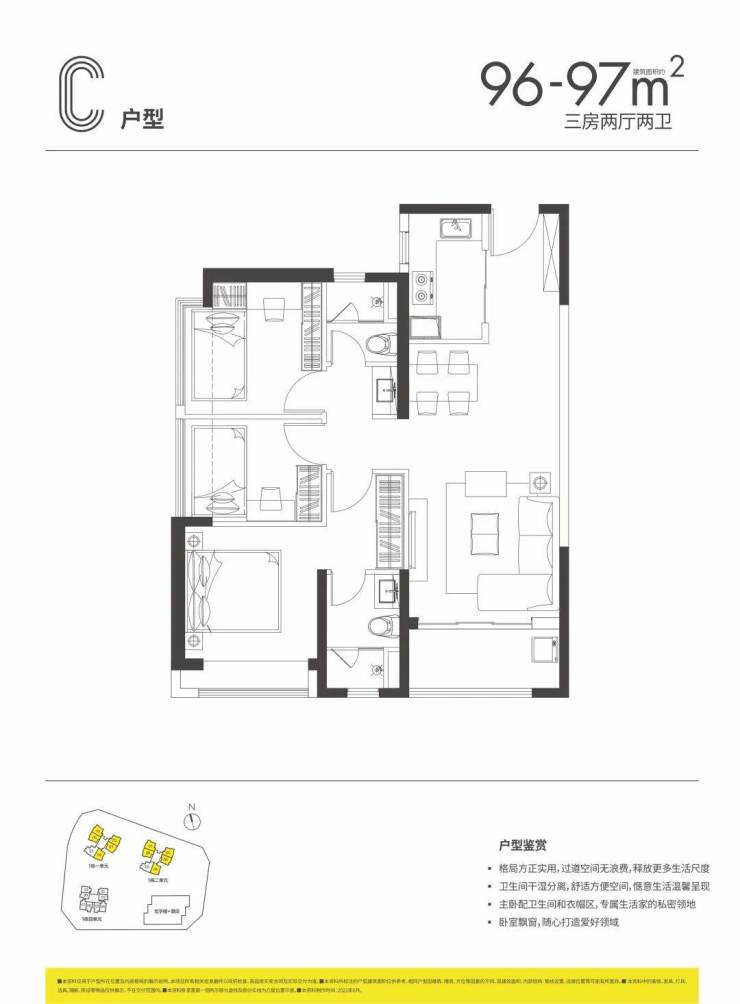 96-97㎡三房两厅两卫