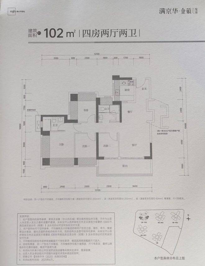 本次推售的是满京华金硕悦府,共由5栋32-48层高的住宅组成,其中1栋1/2单元住宅48F,2栋1单元住宅32F,2栋2单元住宅47F,3栋住宅48F,4栋是1所幼儿园,还配建有社区菜市场,总规划1186户,其中2栋1单元2梯6户,1栋1单元楼王3梯5户,其它栋数全部3梯6户设计。