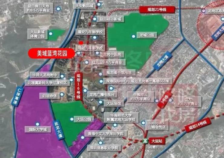 项目轨道16号线龙城公园(距离1公里),未来可在大运枢纽站与14号线换乘,半小时内便可从大运站到达福田中心区,大大缩短大运新城到市区的通勤时间。