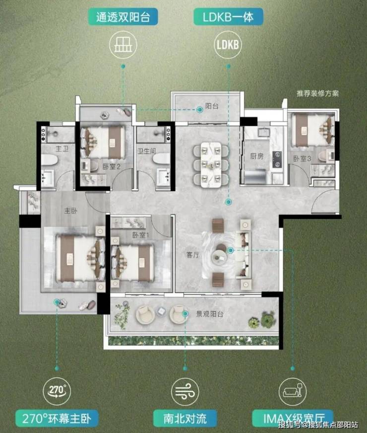 配置长7米的南向阳台,270°主卧观景舱,约33米采光面,视野和景观面实现最大化。