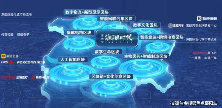 深物业澜湖时代:由深物业集团开发,项目总占地面积约6.8万㎡,总建筑面积约62万㎡,计容建筑面积约43万㎡,共分3个地块开发,总规划约2700户,将建成集产业生产研发、住宅、商业街区于一体的产城综合体,是龙华北片区新的大型标杆项目。
