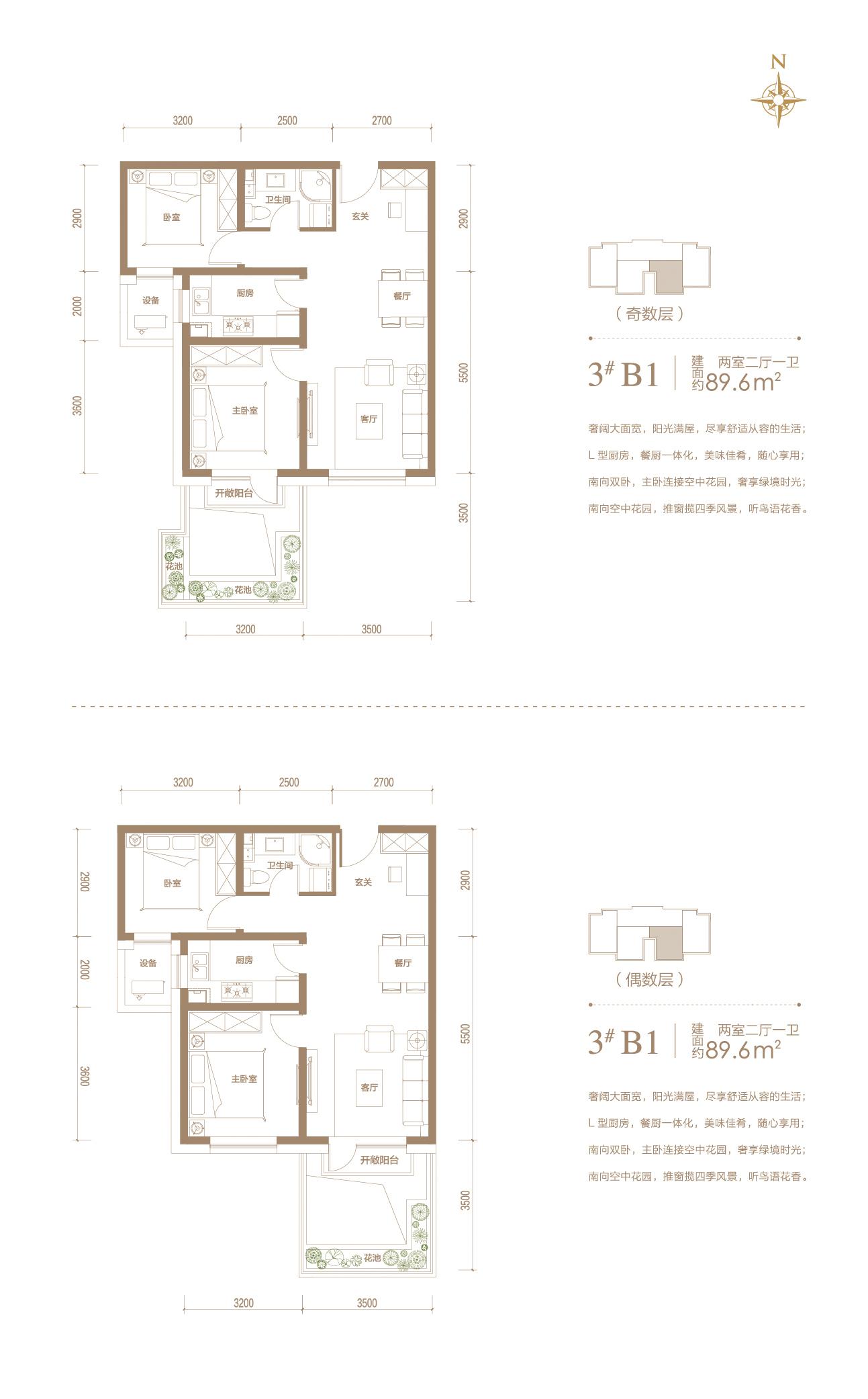2室2厅1卫-3#B'1奇数层88.23㎡