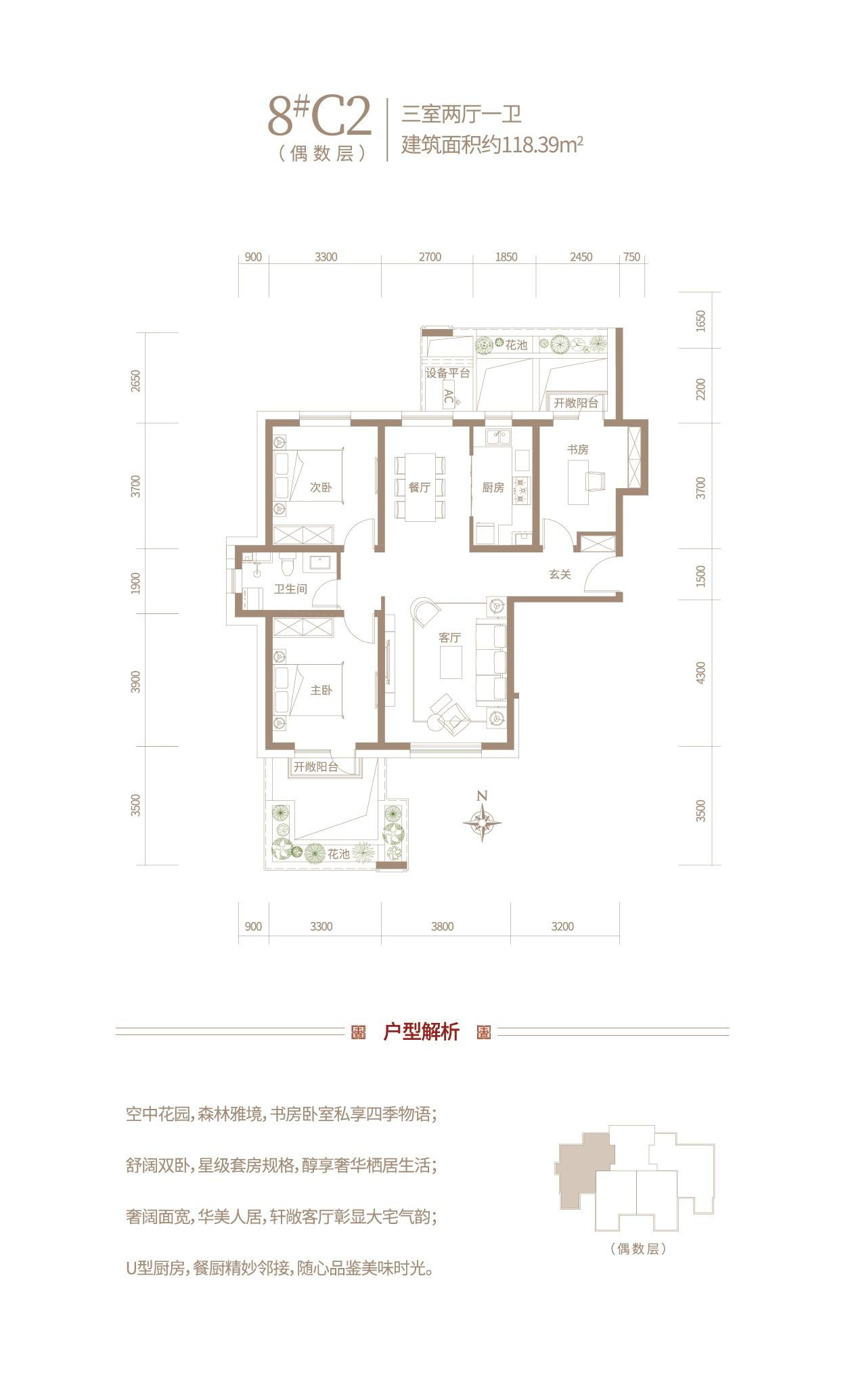 3室2厅1卫-8#04门偶数层-三室118.39㎡