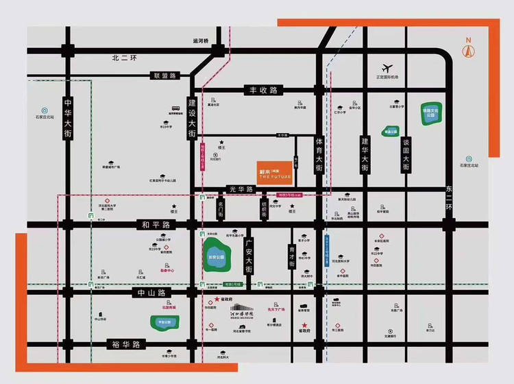 毗邻2号、5号线地铁(规划中)线,体育大街、建设大街、和平路……四横六纵立体路网一站尽享,机场、火车站畅通无阻,拯救各种急脾气,生活工作快人一步。