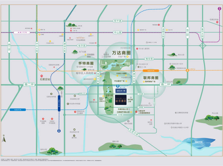 南二环,槐安路、仓裕路;建华大街、体育大街三横两纵主干道,地铁4号线赵卜口站(预计2026年建成通车),便捷畅达全城。