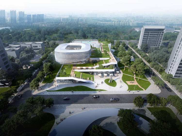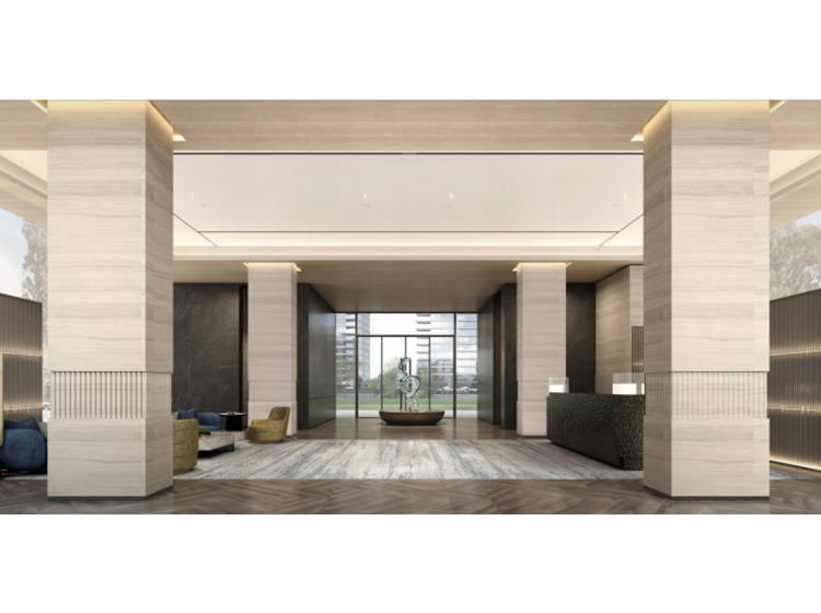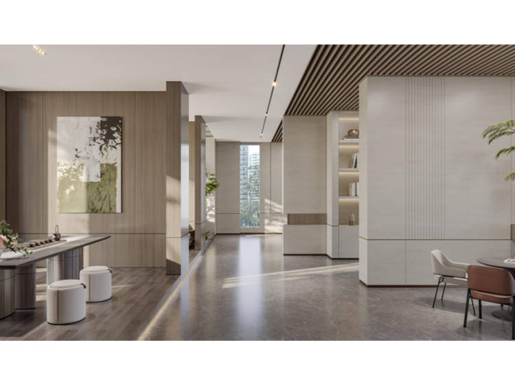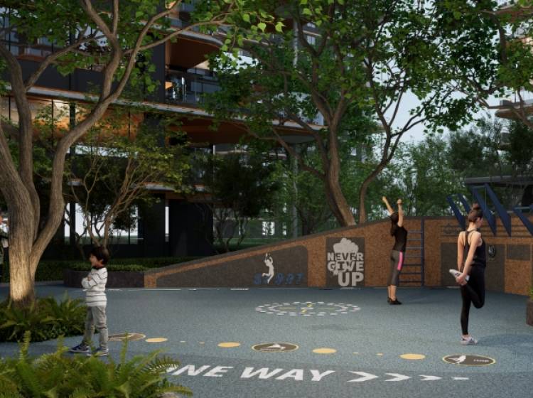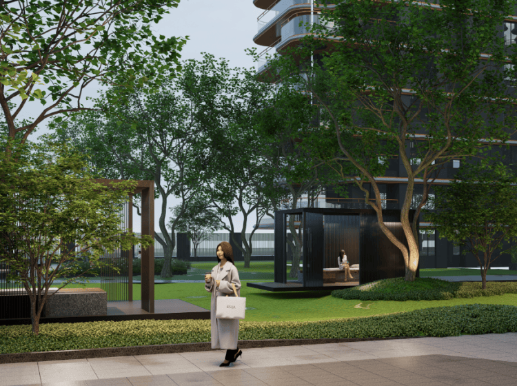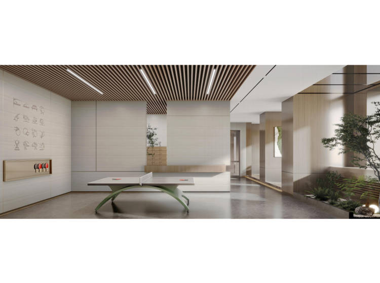 酒店式社区大堂、架空层(四点半学堂、童趣空间、红叶空间、健身房、社区吧、会客厅、康养花园)