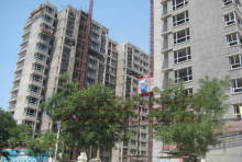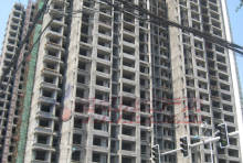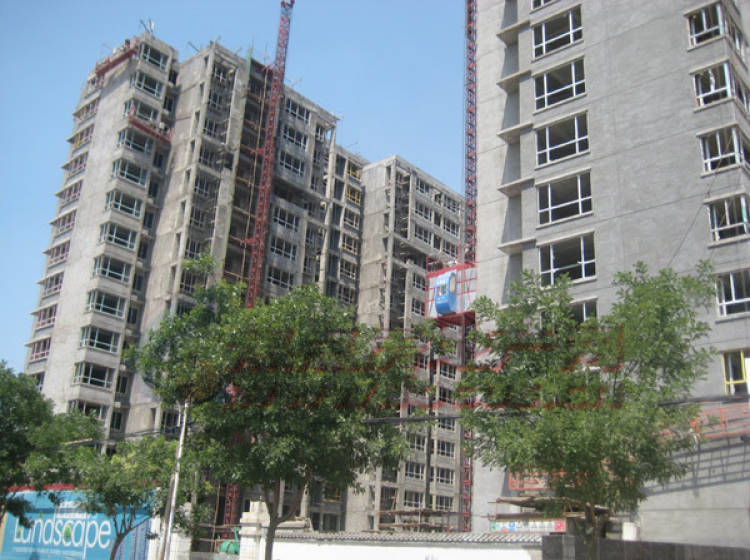 “简筑”项目北临和平路,南临跃进路,西临翟营大街,占地80亩,由11栋南北通透的板式高层以U型围合而成。