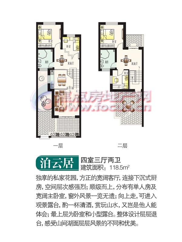 建筑上多层与别墅相映成趣,层层退台养生别墅,三层亲水观景洋房。一层赠小院,三层赠屋顶平台。项目一期开发100余亩,以生态别墅为主,多层为辅,面积为60-120平米多种户型,供客户选择。前后超大观景台的设计,让您欣赏用视野无法丈量的自然美。多层经济实惠,别墅高贵优雅,临湖而居,依山傍水,整体建筑错落而有韵味,与自然和谐共生,体会养生避暑的休闲乐趣。