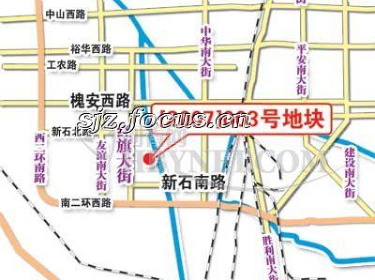 新石中路自西向东,至红旗大街交汇处,东南角即到