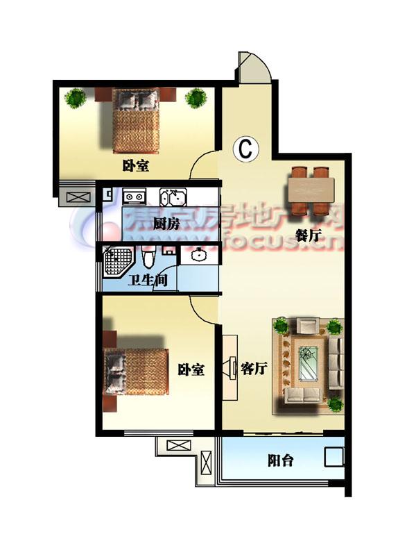 2室2厅1卫-名仕苑88-94平方米两室两厅一卫C