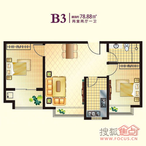 2室2厅1卫-两室两厅一卫78.88平米B3