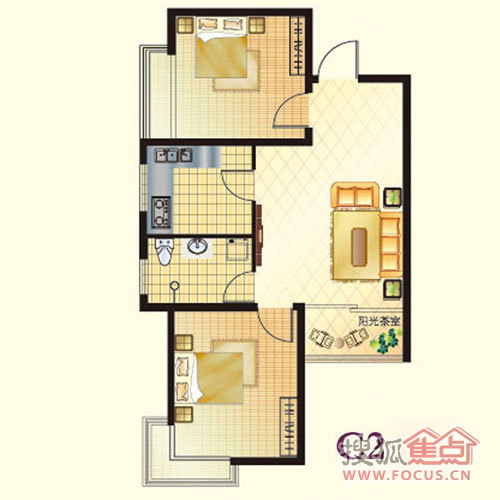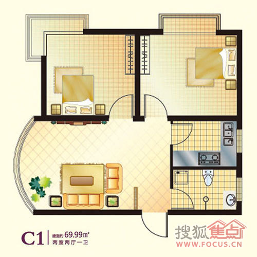 2室2厅1卫-两室两厅一卫69.99平米C1