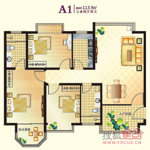 3室2厅2卫-三室两厅两卫113.9平米A1