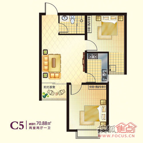2室2厅1卫-两室两厅一卫70.88平米C5